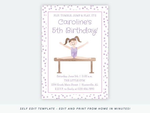 Editable Gymnastics Invitation Gymnastics Birthday Etsy